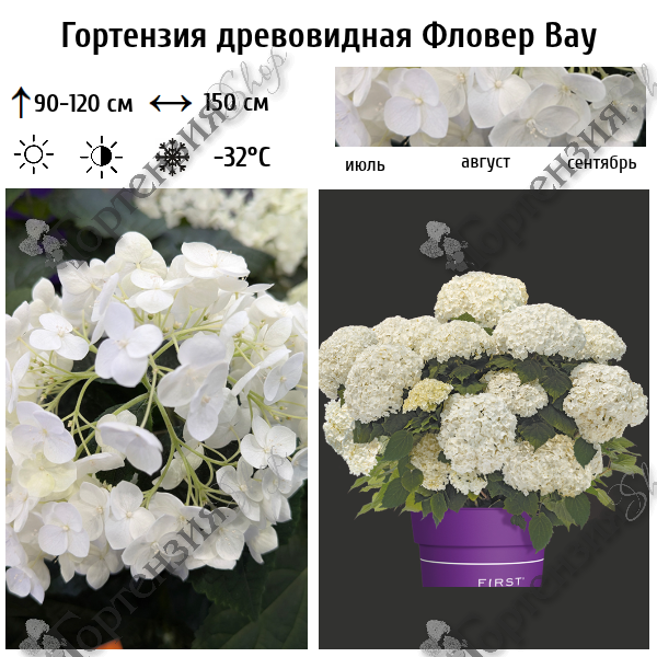 Гортензия древовидная «FlowerWOW» оправдывает своё название потрясающим цветением, которое сохраняется в течение всего сезона! Её плотные округлые цветки похожи на большие снежки и держатся на крепких стеблях, которые удерживают соцветия высоко над землёй даже при ветре и дожде. Гортензия «FlowerWOW» превосходит другие похожие сорта, предлагая больше цветков и более надёжное повторное цветение — она выпускает столько цветков, что листва почти полностью скрыта. Благодаря превосходной генетике этот сильный сорт также отличается повышенной устойчивостью к болезням листьев. Максимальная высота: от 90 см до 1,2 м . Максимальная ширина: 1,5 м