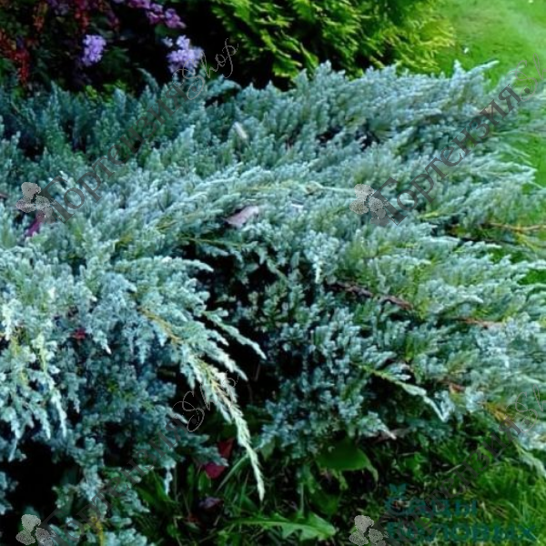 Можжевельник чешуйчатый Блю Карпет (Juniperus sguamata 'Blue Carpet') – вечнозеленый хвойный кустарник. Характеризуется сильноветвистой кроной плоской формы. Свое название сорт получил за хвою серебристо-голубого цвета. При благоприятных условиях выращивания может завязывать ягоды темно-синего цвета. Карликовый медленнорастущий стелющийся кустарник высотой до 50 cм и 2,0 м диаметром. Крона распростёртая, густая. Хвоя игольчатая, колючая, жесткая, короткая, голубовато-стального цвета.