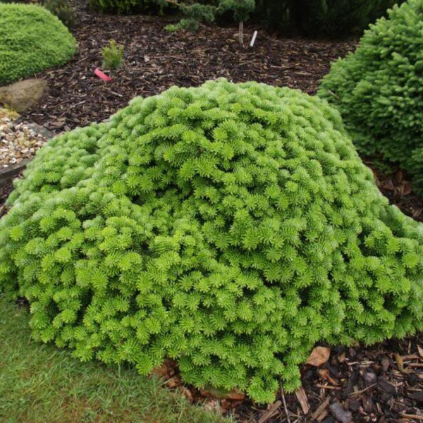 Пихта корейская 'Тундра' - карликовая медленно растущая пихта округлой кроной, высотой до 40 см,  и до 60  см в диаметре. В 10-летнем возрасте не превышает высоты 40 см. Растет медленно. Молодые приросты ярко-зеленого цвета. Не меняет насыщенный зеленый окрас хвои в зимний период. Хвоя короткая, мягкая, блестящая, с нижней стороны серебристая. Иглы мягкие и гладкие на ощупь. Неприхотлива. Любит плодородные, хорошо дренированные влажные почвы и солнечные места. Пихта почти не нуждается в обрезке. Подойдет для озеленения балконов, террас, для выращивания в контейнере, для небольших каменистых и вересковых садов, альпийских горок.
