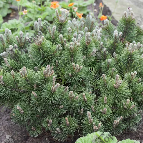Сосна горная 'Марч' -  раскидистый,  карликовый кустарник с компактной кроной. Высота растения в 10 лет 60 см. К 20 годам - до 1.0 м., в высоту, и до 1.0 м. ширины. Растет медленно. Хвоя относительно длинная, темно-зеленая. Любит солнечные места. К составу почвы нетребовательная. Не выносит застоя воды. Морозоустойчивая. Используется в одиночной и групповой посадке, оформлении рокария, или контейнерного выращивания.