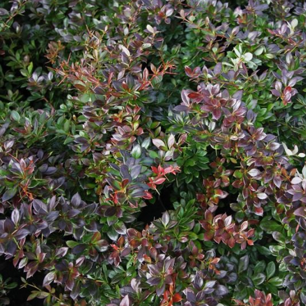Барбарис средний Ред Джевел (Berberis media 'Red Jewel' )  - невысокий кустарник  с густой, подушкообразной  кроной и многочисленными побегами высотой до1,5 м. и диаметром кроны до 1,5 м. Листья мелкие, летом зеленые осенью красно оранжевые, слегка блестящие, удерживающиеся на кустарнике до поздней осени. Цветёт в мае. Плоды овальные, черные, созревают в первый месяц осени и остаются на кусте почти до весны. Светолюбив. Зимоустойчив и засухоустойчив. Используется в одиночной и групповой посадке и как элемент живой изгороди.