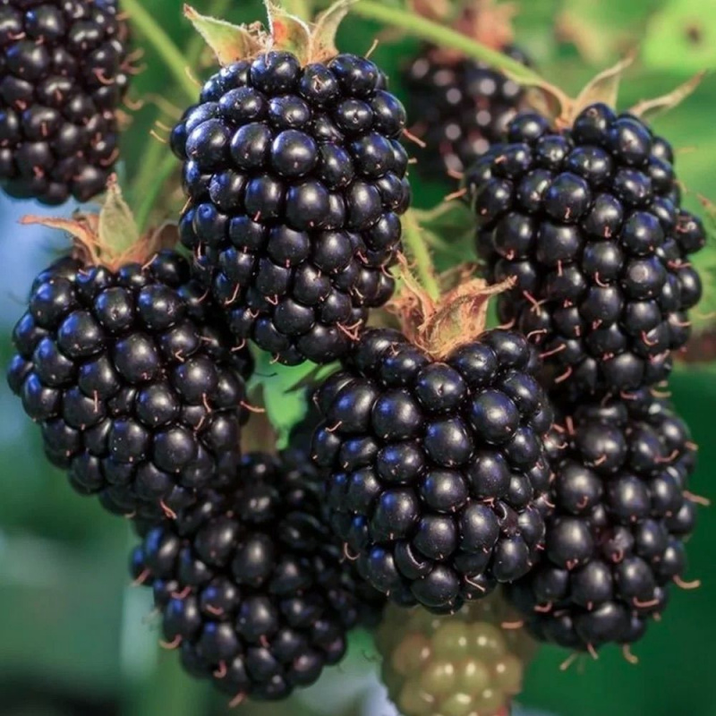 Ежевика Блэк Сатин (Black Satin) – неремонтантный сорт с ранним сроком созревания, относится к полустелющейся форме ежевики,  до 6-7 метров. При должном уходе дает до 12-14 кг с одного куста.Ягоды округло-вытянутые, не особо крупные, весом до 6-8 грамм и собраны в кисти, по 13-16 штук в каждой. В стадии технической спелости — кисло-сладкие на вкус, при полноценном созревании становятся слаще и приобретают черный глянцевый блеск. низкая морозоустойчивость. Начинается плодоношение с конца июля или начала августа (в зависимости от региона) и длится до поздней осени.