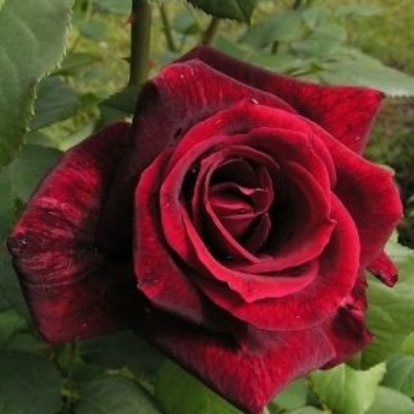 Чайно-гибридная роза 'Jubilee de Papa Meilland ' - элегантные заостренные бутоны этой розы раскрываются в темные бархатисто- красные цветки восхитительной классической формы. Крупные, очень ароматные цветки состоят из около 35 лепестков. Цветки одиночные, на длинных побегах. Повторноцветущее цветение. Куст высотой до 100 сантиметров, листки блестящие темно-зелёные. Растения устойчивы к болезням. Идеален для срезки, а также для клумб и розариев.