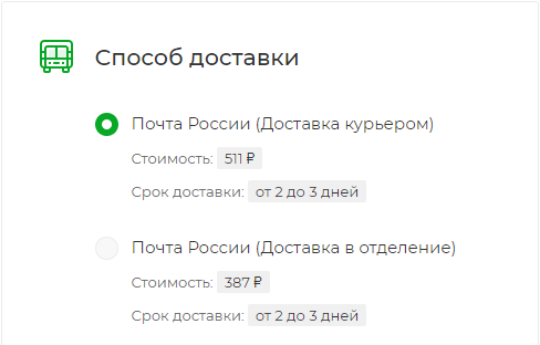 Выбираете способ доставки – "Почта России" или "СДЭК", доставка в отделение или курьер.